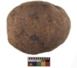 | Description / विवरण | Specimen of a hammerstone with battered periphery along with the circumference. |