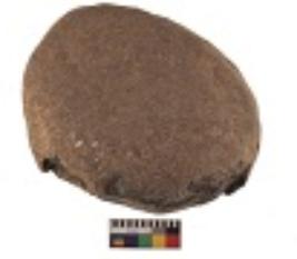 | Description / विवरण | Specimen of a hammerstone with battered periphery along with the circumference. |