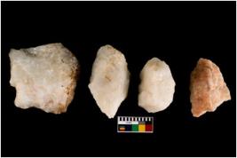 | Description / विवरण | Specimen of cores with weathered cortex and very few fluted marks. Most of them are uneven whereas some are tapering at one end. |