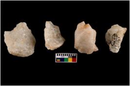 | Description / विवरण | Specimen of cores with weathered cortex and very few fluted marks. Most of them are uneven whereas some are tapering at one end. |