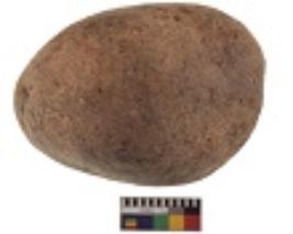 | Description / विवरण | Specimen of a hammerstone with battered periphery along with the circumference. |