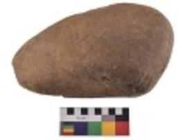 | Description / विवरण | Specimen of a hammerstone with battered periphery along with the circumference. |