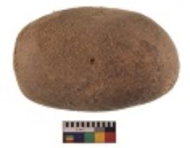 | Description / विवरण | Specimen of a hammerstone with battered periphery along with the circumference. |