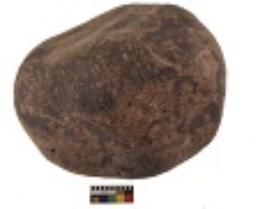 | Description / विवरण | Specimen of a hammerstone with battered periphery along with the circumference. |