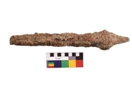 | Description / विवरण | Highly corroded specimen of a spearhead. |