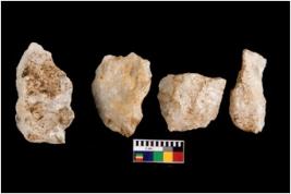 | Description / विवरण | Specimen of cores with weathered cortex and very few fluted marks. Most of them are uneven whereas some are tapering at one end. |