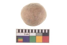 | Description / विवरण | Specimen of a sling ball having rough surface and reddish colour. |