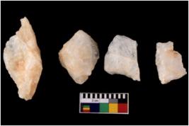 | Description / विवरण | Specimen of a cores with several broad fluted marks. Some of them have sharp edges. |