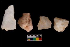 | Description / विवरण | Specimen of a cores with several broad fluted marks. Some of them have sharp edges. |
