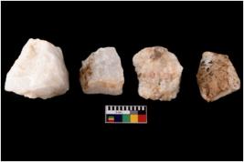 | Description / विवरण | Specimen of a cores with several broad fluted marks. Some of them have sharp edges. |