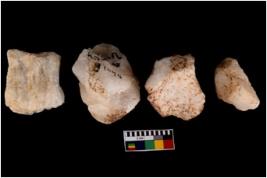 | Description / विवरण | Specimen of a cores with several broad fluted marks. Some of them have sharp edges. |