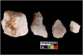 | Description / विवरण | Specimen of a cores with several broad fluted marks. Some of them have sharp edges. |