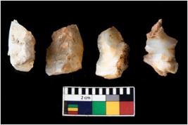 | Description / विवरण | There are n 4 of utilized worked cores. They show multidirectional irregular dominant scar pattern. Two have broken tip. |