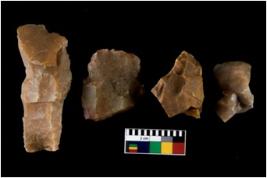 | Description / विवरण | There are n 4 of utilized worked cores. They show multidirectional irregular dominant scar pattern. Two are tapering on one end and all are having sharp edges. |