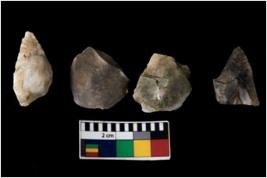 | Description / विवरण | There are n 4 of utilized worked cores. They show multidirectional irregular scar pattern. One is elongated in shape. |