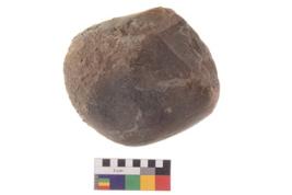| Description / विवरण | Specimen of a round shaped hammerstone with battered periphery along with the circumference. |