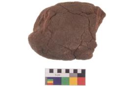 | Description / विवरण | Specimen of an oval shaped saddle quern. It has battered surface along with curved ridges. |