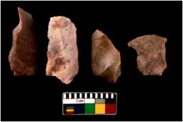 | Description / विवरण | There are n 4 of utilized worked cores. They show multidirectional irregular scar pattern. Three are elongated in shape. |