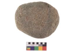 | Description / विवरण | Specimen of an oval shaped saddle quern. It has battered surface along with curved ridges. |
