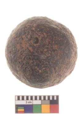 | Description / विवरण | Specimen of a sling ball having rough surface and reddish colour. |