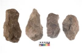 | Description / विवरण | These are n 4 of worked tools. They are tapering at one end and have sharp edges. They have round base and show dominant irregular scar pattern. |