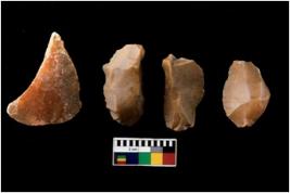| Description / विवरण | There are n 4 of utilized worked cores. They show multidirectional irregular dominant scar pattern. One is tapering at one end. |