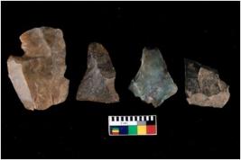 | Description / विवरण | There are n 4 of utilized worked cores. They show multidirectional irregular dominant scar pattern. Three are tapering at one end. |