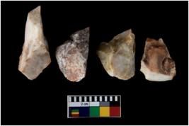 | Description / विवरण | There are n 4 of utilized worked cores. They show multidirectional irregular dominant scar pattern. One is elongated in shape. |