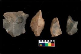 | Description / विवरण | There are n 4 of utilized worked cores. They show multidirectional irregular dominant scar pattern and have sharp edges. Three are tapering at one end. |