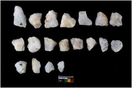 | Description / विवरण | There are n 20 flakes; they comprise of shapes like the crescent, arc shape. They have thin sides which are sharp and ridge lines are visible. |