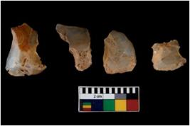 | Description / विवरण | There are n 4 of utilized worked cores. They show multidirectional irregular dominant scar pattern. Two of them are tapering on one end. |