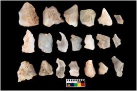 | Description / विवरण | There are n 20 worked flakes; all are having sharp edges. Sone are tapering at one end whereas some have flat base.All are uneven in shape and size. None of them show crested ridge flakes. |