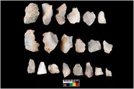 | Description / विवरण | There are n 20 worked flakes; all are having sharp edges. Sone are tapering at one end whereas some have flat base.All are uneven in shape and size. None of them show crested ridge flakes. |