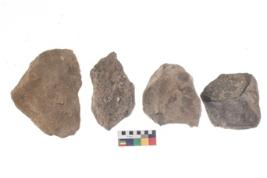 | Description / विवरण | These are n 4 of worked tools. They are tapering at one end and have sharp edges. They have round base and show dominant irregular scar pattern. |
