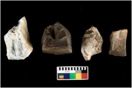 | Description / विवरण | There are n 4 of utilized worked cores. They show multidirectional irregular dominant scar pattern. Two have broken tip. All are having sharp edges. |