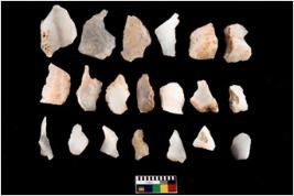 | Description / विवरण | There are n 20 worked flakes; all are having sharp edges. Sone are tapering at one end whereas some have flat base.All are uneven in shape and size. None of them show crested ridge flakes. |