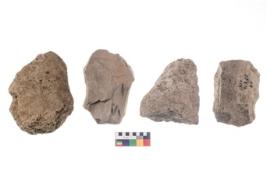 | Description / विवरण | These are n 4 of worked tools. They are tapering at one end and have sharp edges. They have round base and some have flat base and show dominant irregular scar pattern. |