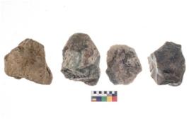 | Description / विवरण | These are n 4 of worked tools. They are tapering at one end and have sharp edges. They have round base and show dominant irregular scar pattern. |