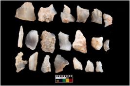 | Description / विवरण | There are n 20 worked flakes; all are having sharp edges. Sone are tapering at one end whereas some have flat base.All are uneven in shape and size. None of them show crested ridge flakes. |