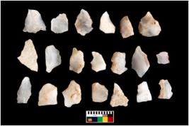| Description / विवरण | There are n 20 worked flakes; all are having sharp edges. Sone are tapering at one end whereas some have flat base.All are uneven in shape and size. None of them show crested ridge flakes. |