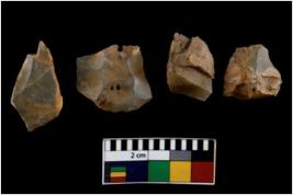 | Description / विवरण | There are n 4 of utilized worked cores. They show multidirectional irregular scar pattern. Three have broken tip. |