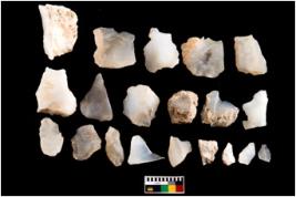 | Description / विवरण | There are n 20 worked flakes; all are having sharp edges. Sone are tapering at one end whereas some have flat base.All are uneven in shape and size. None of them show crested ridge flakes. |