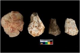 | Description / विवरण | There are n 4 of utilized worked cores. They show multidirectional irregular dominant scar pattern. Two have broken tip. |
