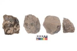 | Description / विवरण | These are n 4 of worked tools. They are tapering at one end and have sharp edges. They have round base and show dominant irregular scar pattern. They have broken tip. |