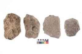 | Description / विवरण | These are n 4 of worked tools. They are tapering at one end and have sharp edges. They have round base and show dominant irregular scar pattern. |