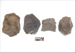 | Description / विवरण | These are n 4 of worked tools. They are tapering at one end and have sharp edges. Some have round base and show dominant irregular scar pattern. |