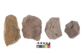 | Description / विवरण | These are n 4 of worked tools. They are tapering at one end and have sharp edges. They have round base and show dominant irregular scar pattern. They have broken tip. |