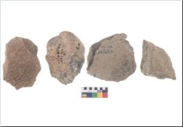 | Description / विवरण | These are n 4 of worked tools. They are tapering at one end and have sharp edges. Some have round base and show dominant irregular scar pattern. |
