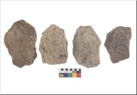 | Description / विवरण | These are n 4 of worked tools. They are tapering at one end and have sharp edges. Some have round base and show dominant irregular scar pattern. |