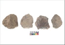| Description / विवरण | These are n 4 of worked tools. They are tapering at one end and have sharp edges. Some have round base and show dominant irregular scar pattern. They have broken tip. |